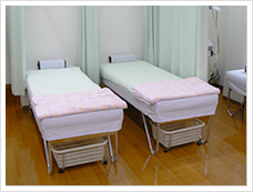 点滴は、こちらのベットで実施します。点滴中に何かありましたら、備え付けのベルを押してください。担当の看護師がまいります。