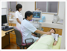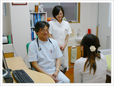 順番が来ますと職員が診察室からお呼びしますので、中にお入りください。院長の問診の後、聴診・腹部触診・血圧測定等をいたします。